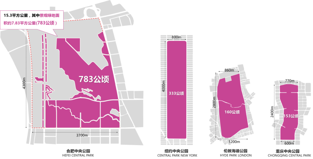 合肥中央公园,位于合肥南站南侧,由包河大道、锦绣大道、徽州大道、繁华大道围合而成,总面积约15.3平方公里,其中景观绿地面积约7.83平方公里。据目前分析调查,合肥中央公园建成后将有可能成为全世界最大的中央公园。