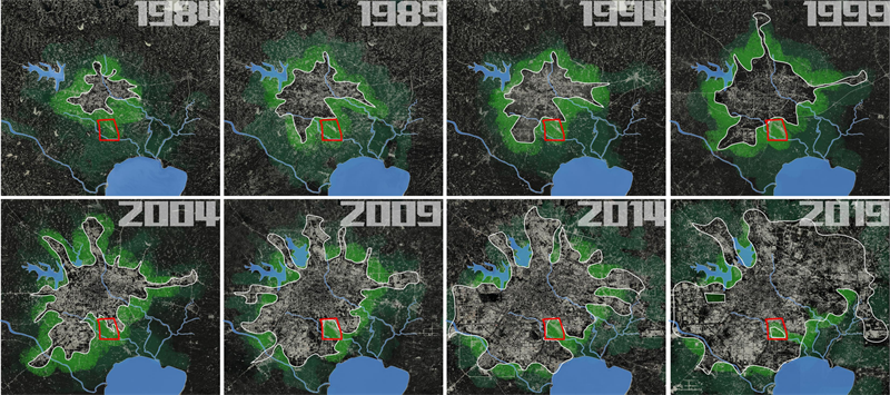 沿用水口园林的布局形态,传承文脉,实现传统文明与现代文明交互更替。十五里河,自西北穿园而过,锦绣湖地势低洼,天然可聚全园灵秀之水。守望森林作为城市最后的保护地,像水口林一样,守望千年,庇万物生息。中央全向信标塔与西侧城市组团恰好呼应了聚落与水口塔的对应关系,水口格局,跃然城上。
