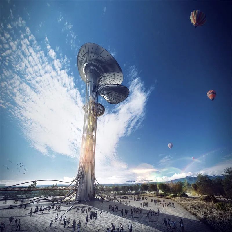用城市核心地标进行形象展示,结合在地文化,多点活力地标节点串联,形成以信标塔为聚集点的城市主要轴线,展示城市新形象,通过现代的地标语言,传承当地传统文明。
